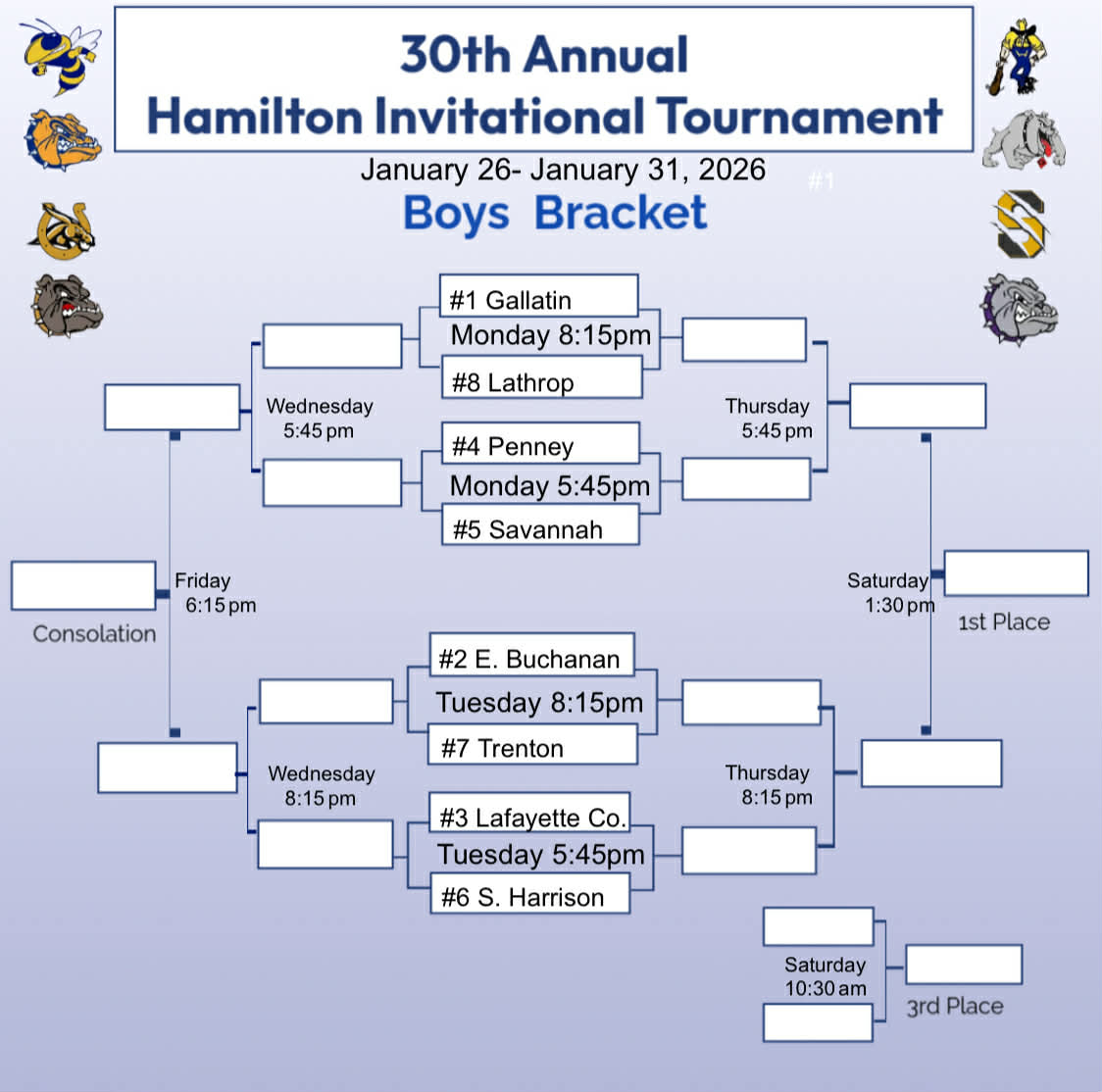 Canceled | Champion: Trenton Second: Hamilton Third: East Buchanan Consolation: Gallatin |