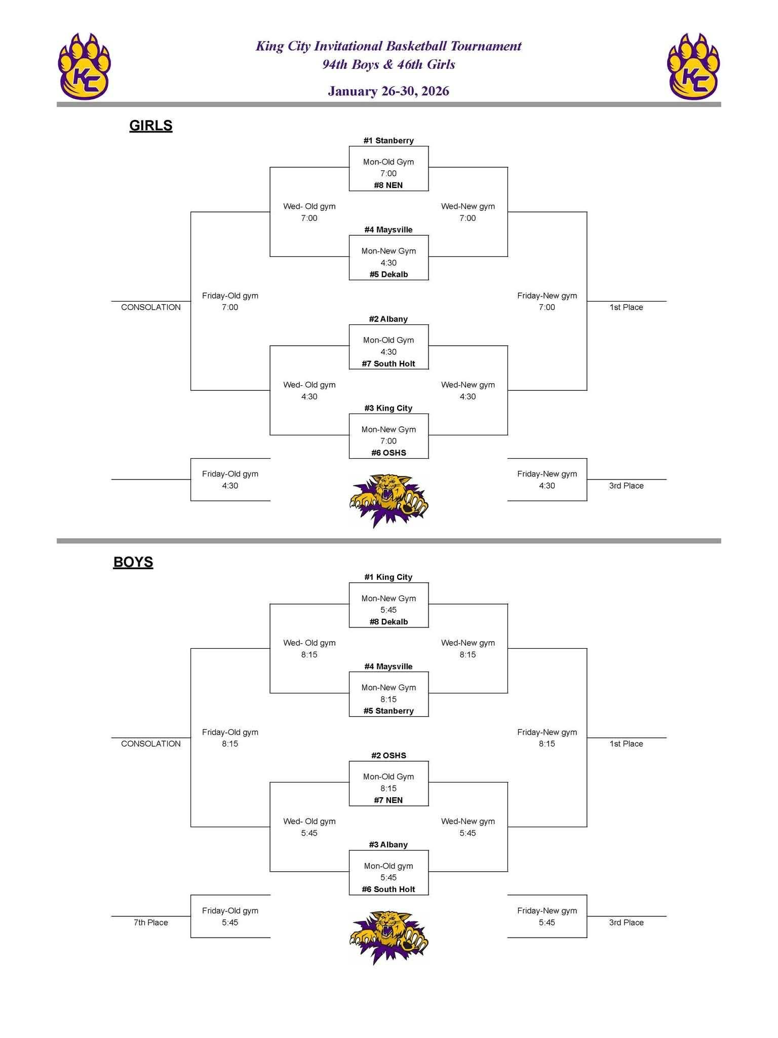 | Teams: King City, North Andrew, Pattonsburg (Boys), St. Joseph Christian (Girls) | ||